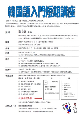外国語短期講座 (参加有料) 2025年1月~3月(水曜) |
